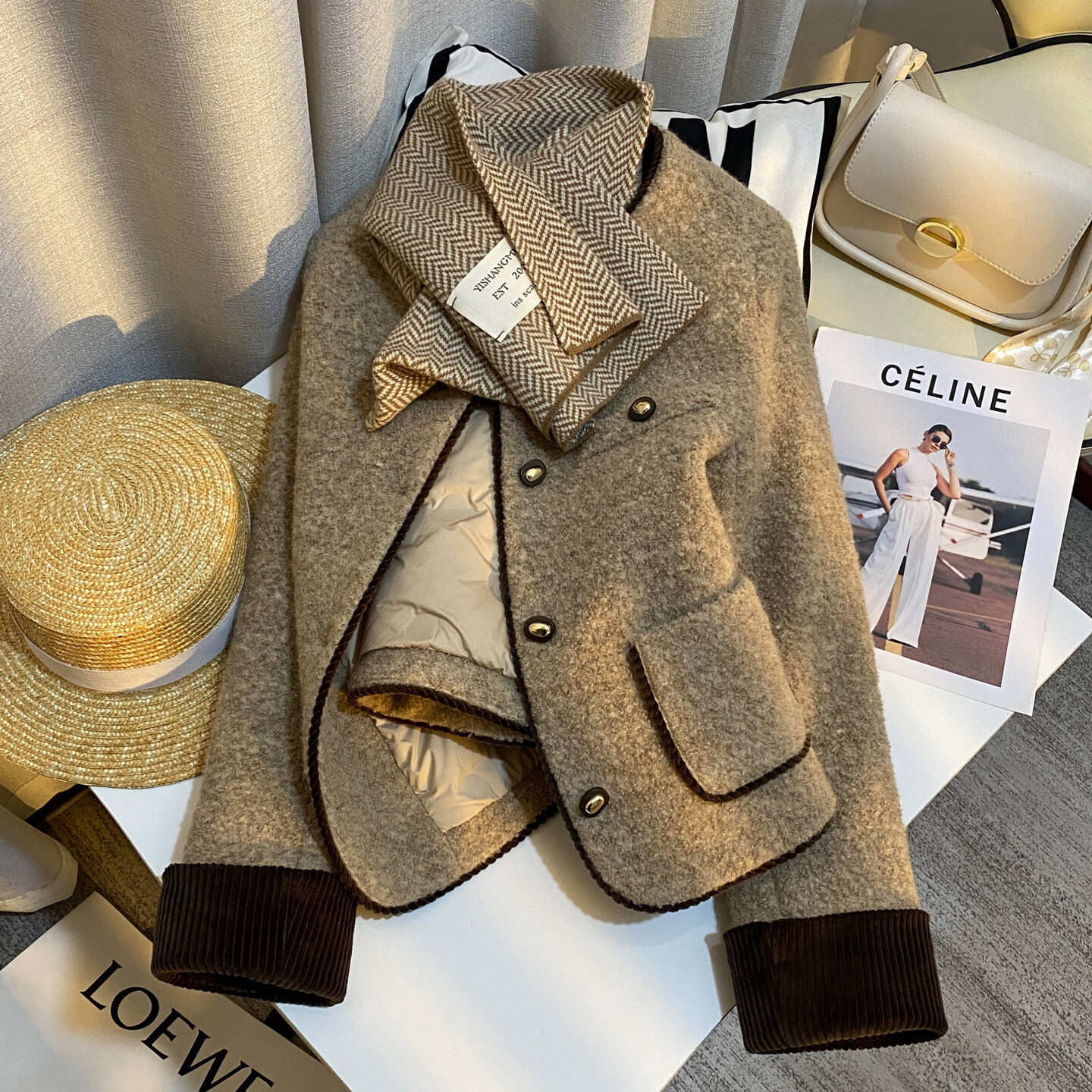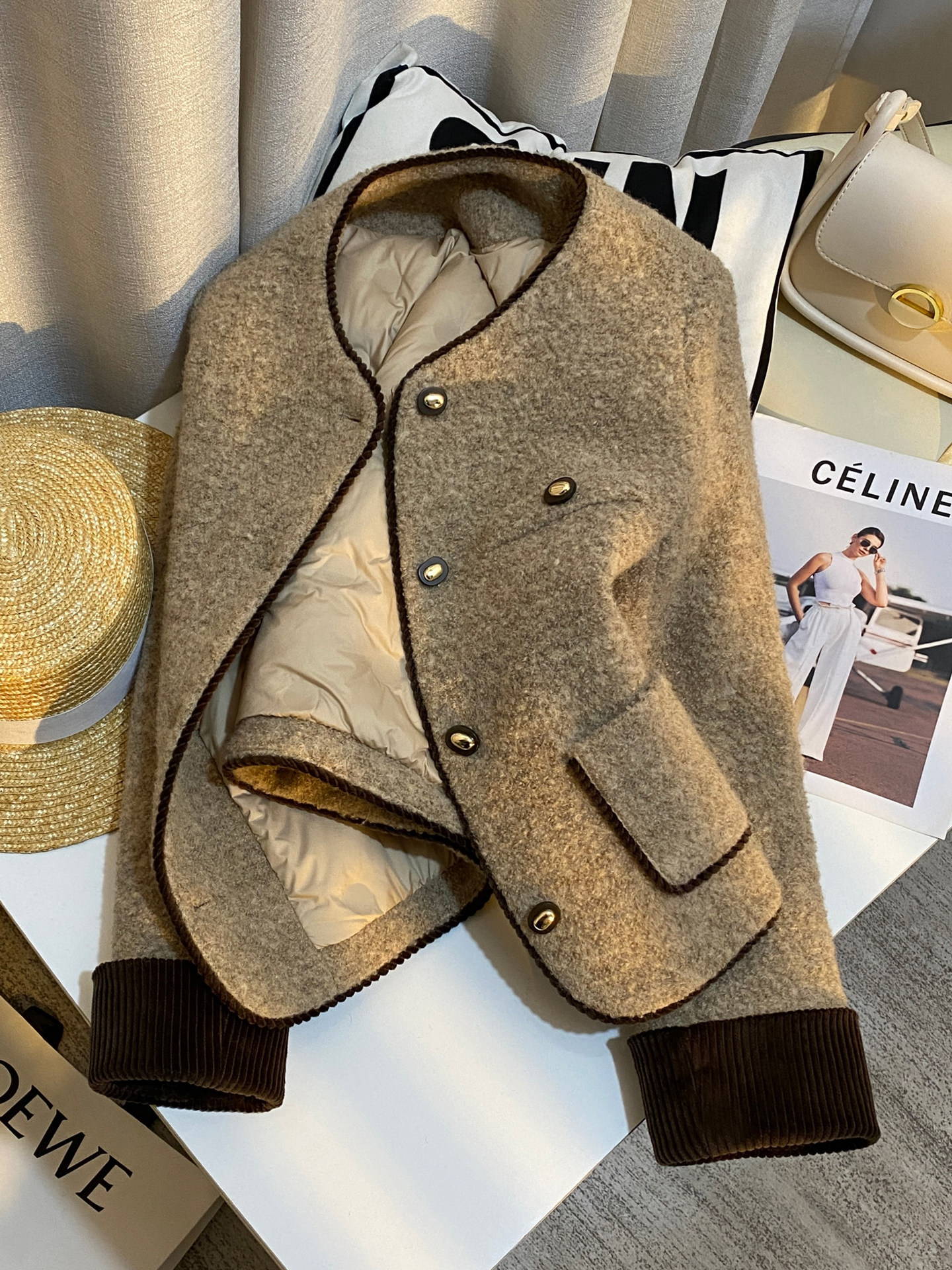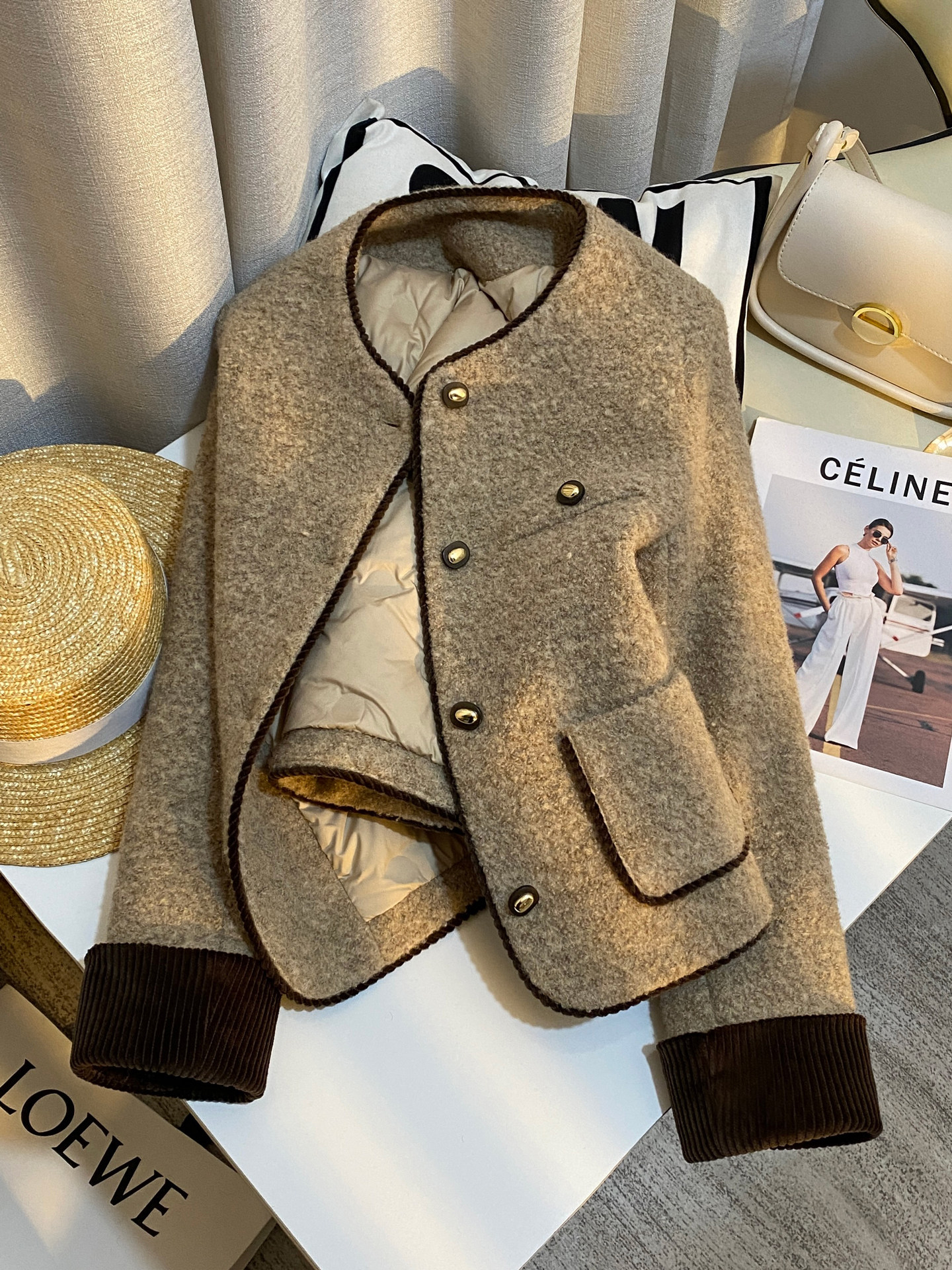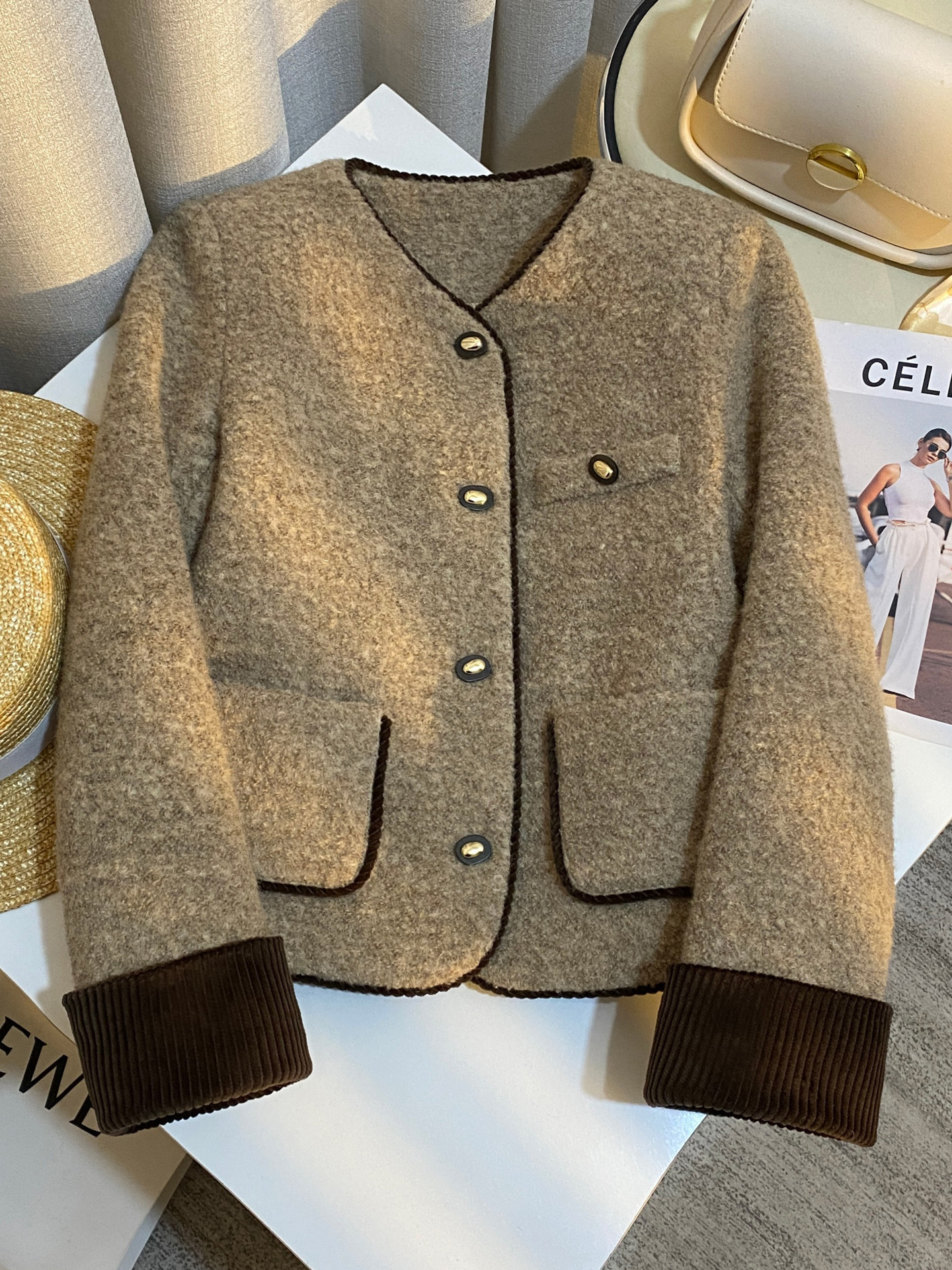 | Thành phần vải | 40% len lông cừu, 44% polyester, 8% nylon, 8% cotton | Lưng sau | Không xẻ tà |