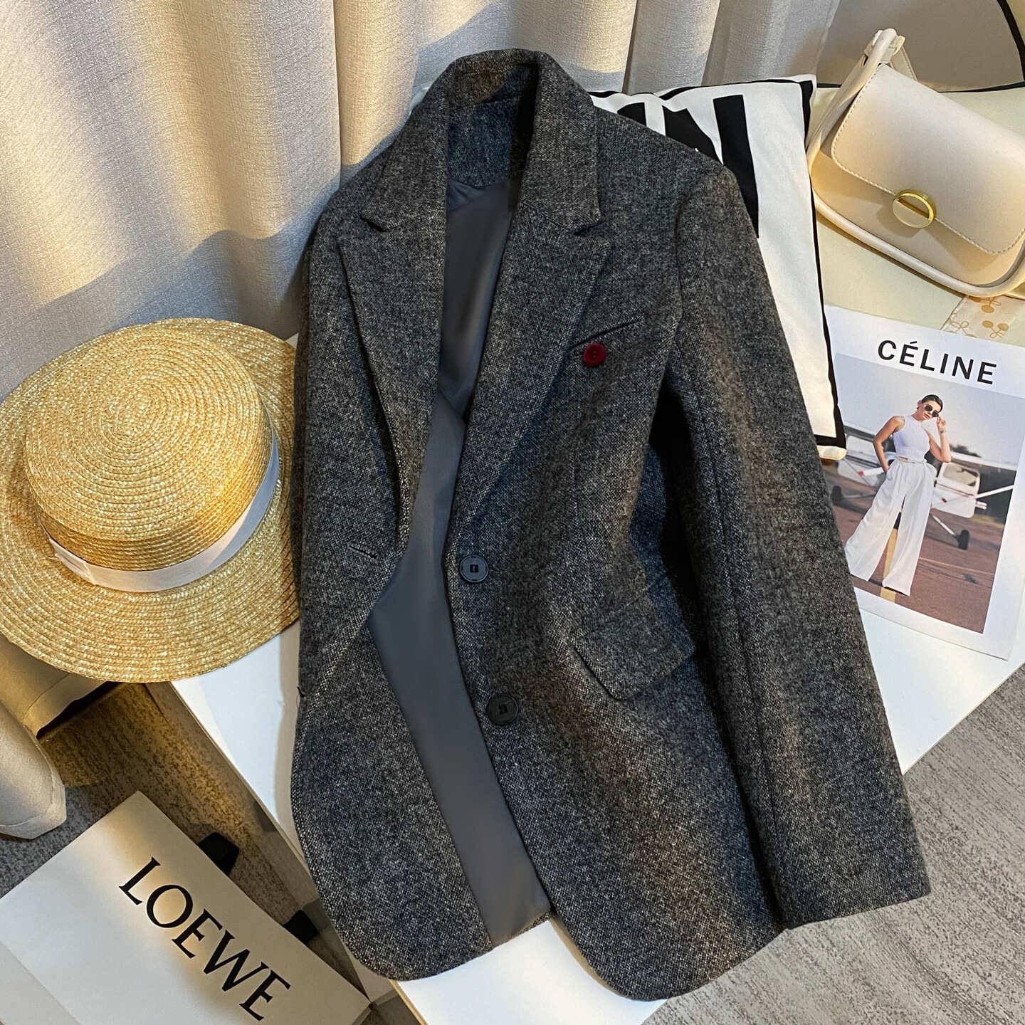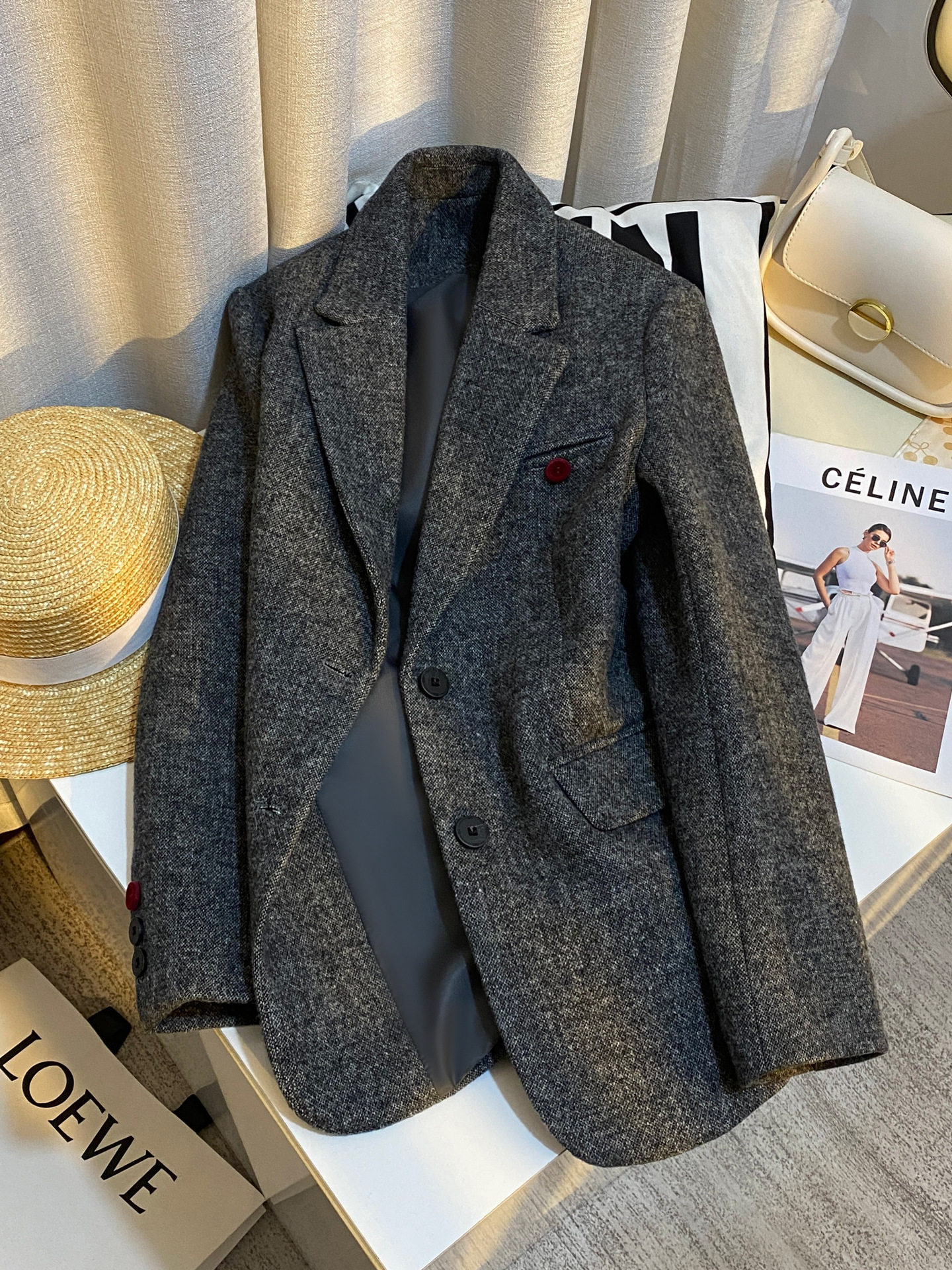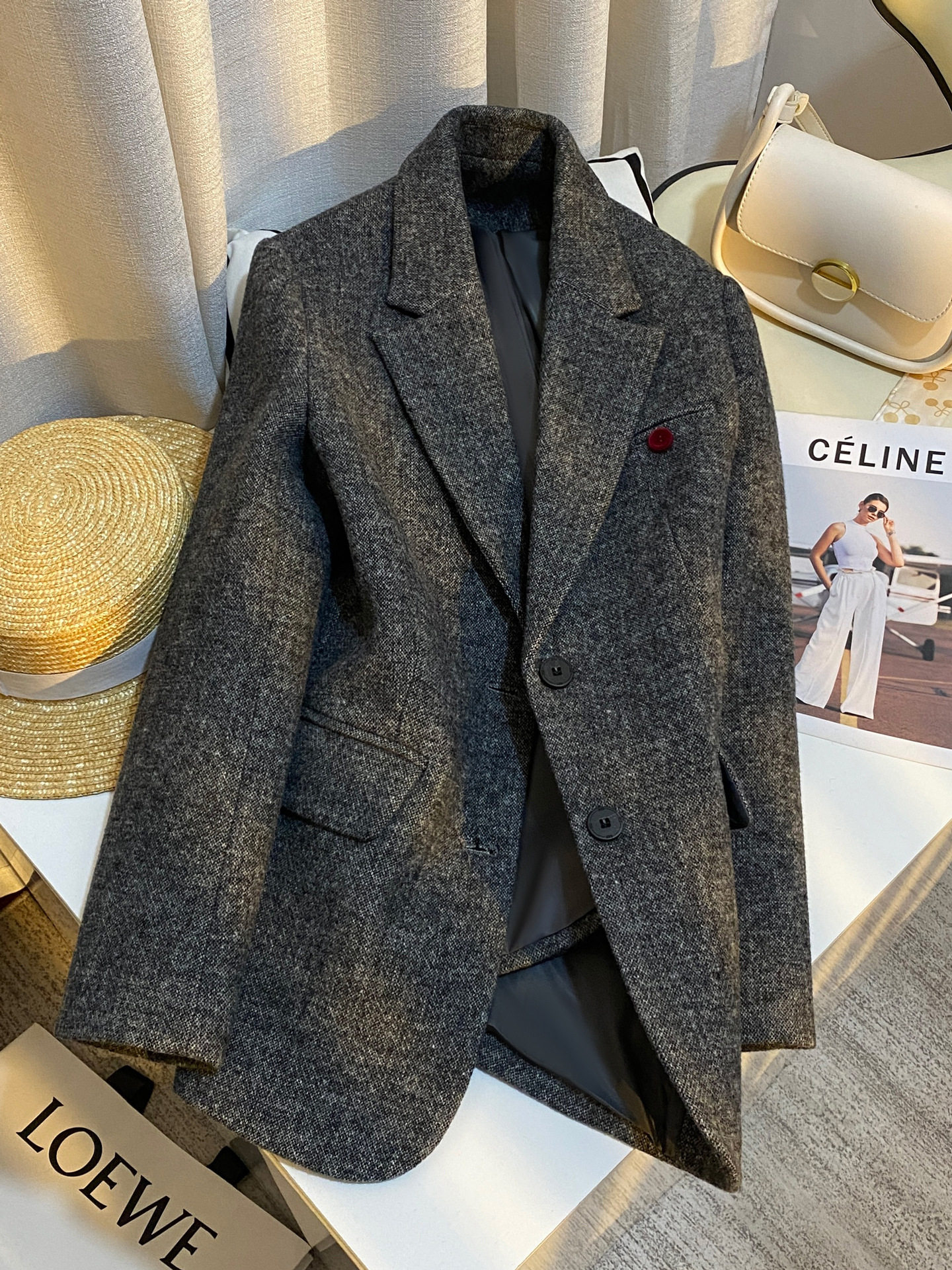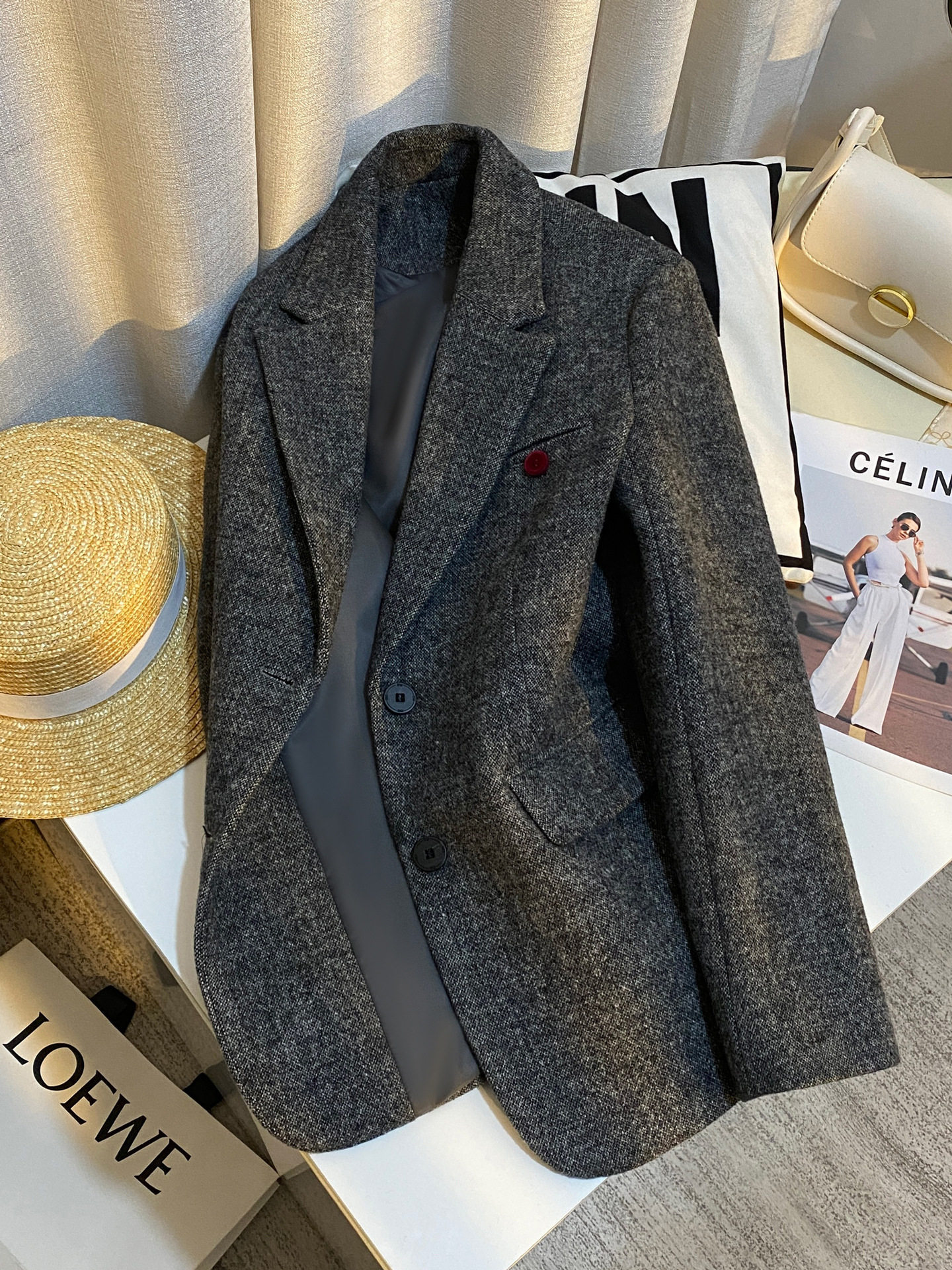 | Thành phần vải ngoài | 30% len lông cừu, 70% sợi polyester | Lưng sau | Không xẻ tà |