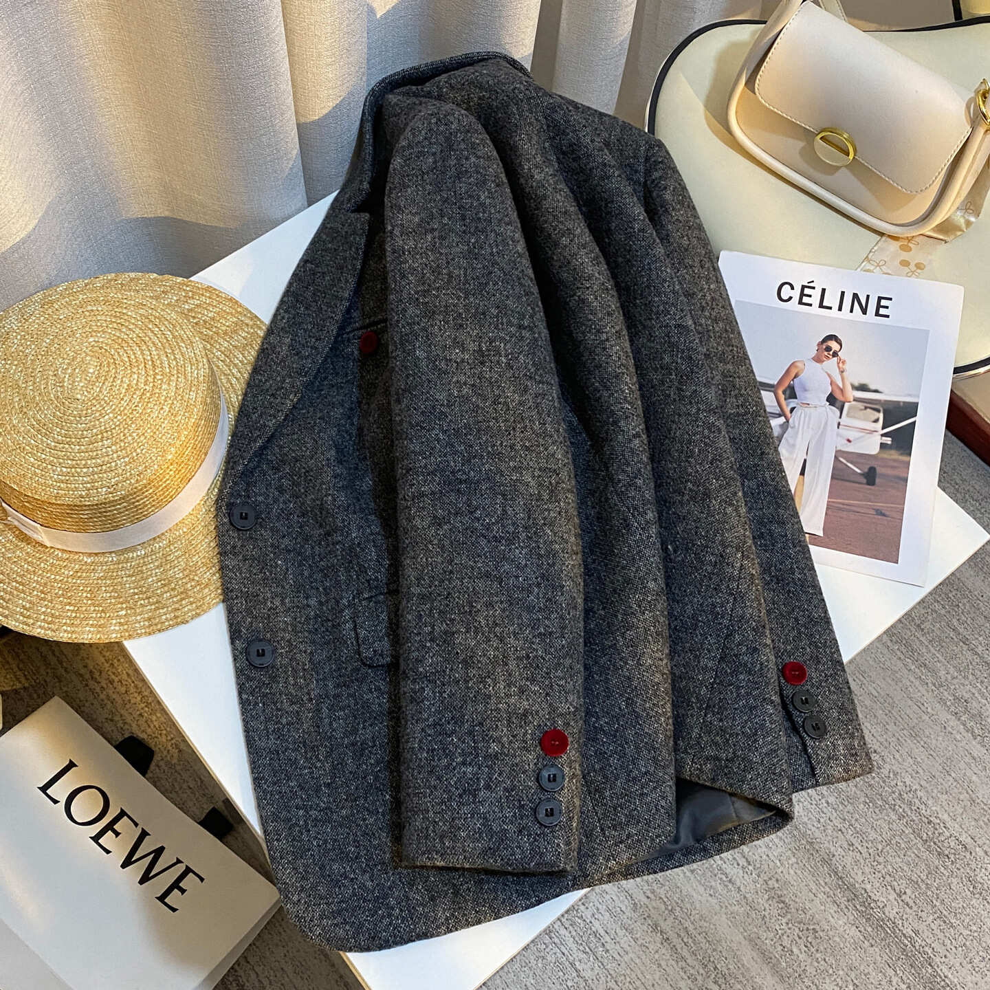 | Mùa | Thu đông | Nút | Nút nhựa (resin), nút bọc vải/len |