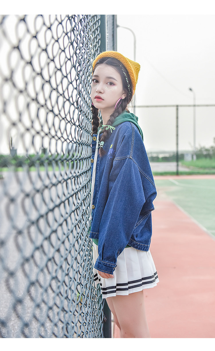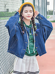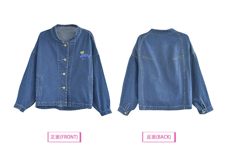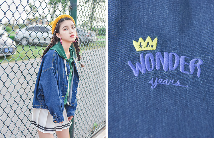 Áo khoác jean thêu vương miện kèm chữ Wonder