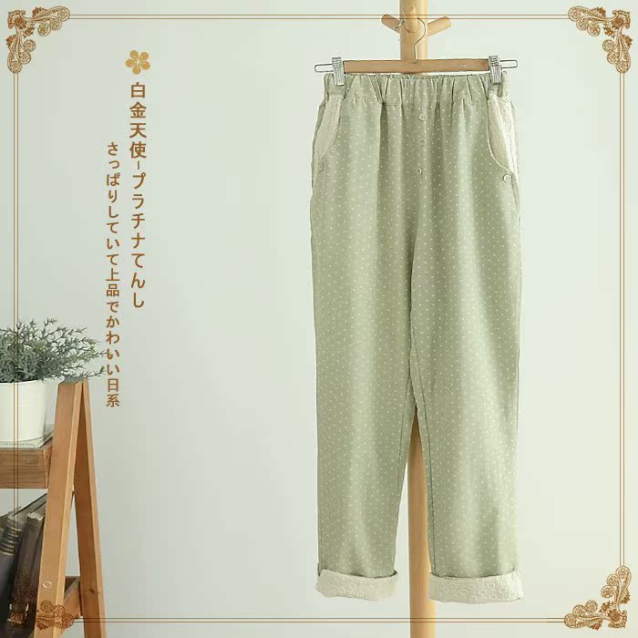 Quần xanh lá nhạt chấm bi