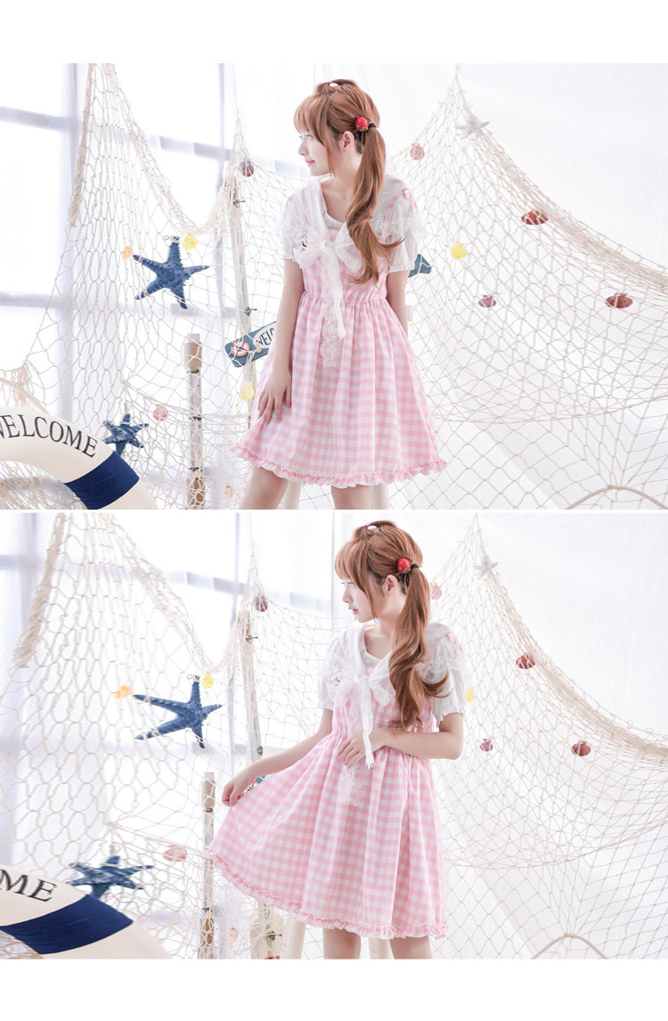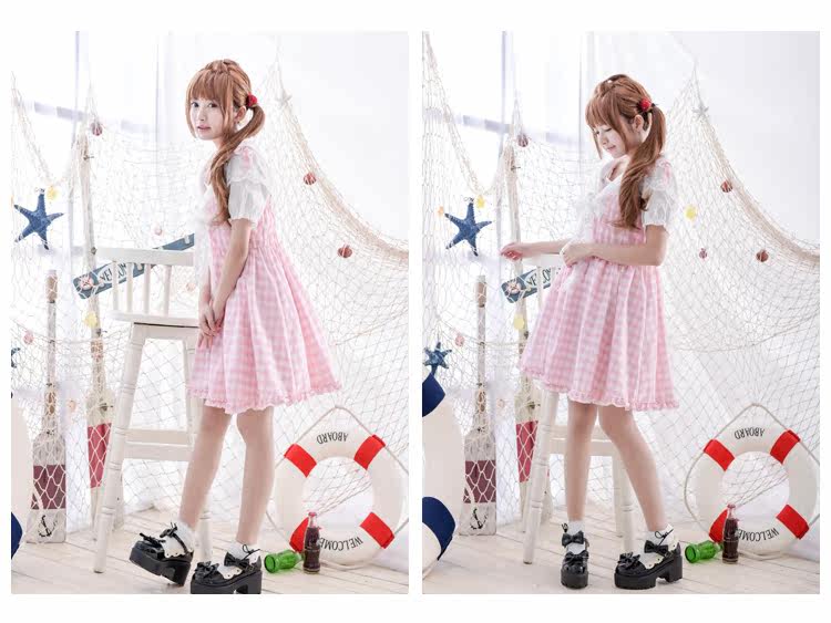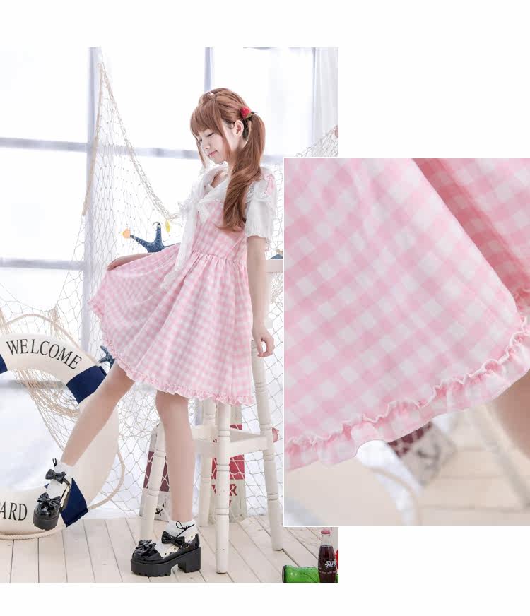 Váy sọc caro hồng
